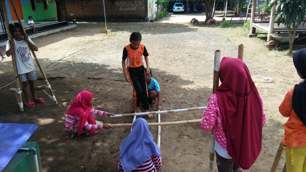 Ada beragam sumber belajar yang bisa digunakan anak-anak rumah baca untuk mengajarkan tentang nilai-nilai pendidikan karakter. Salah satunya bermain egrang.